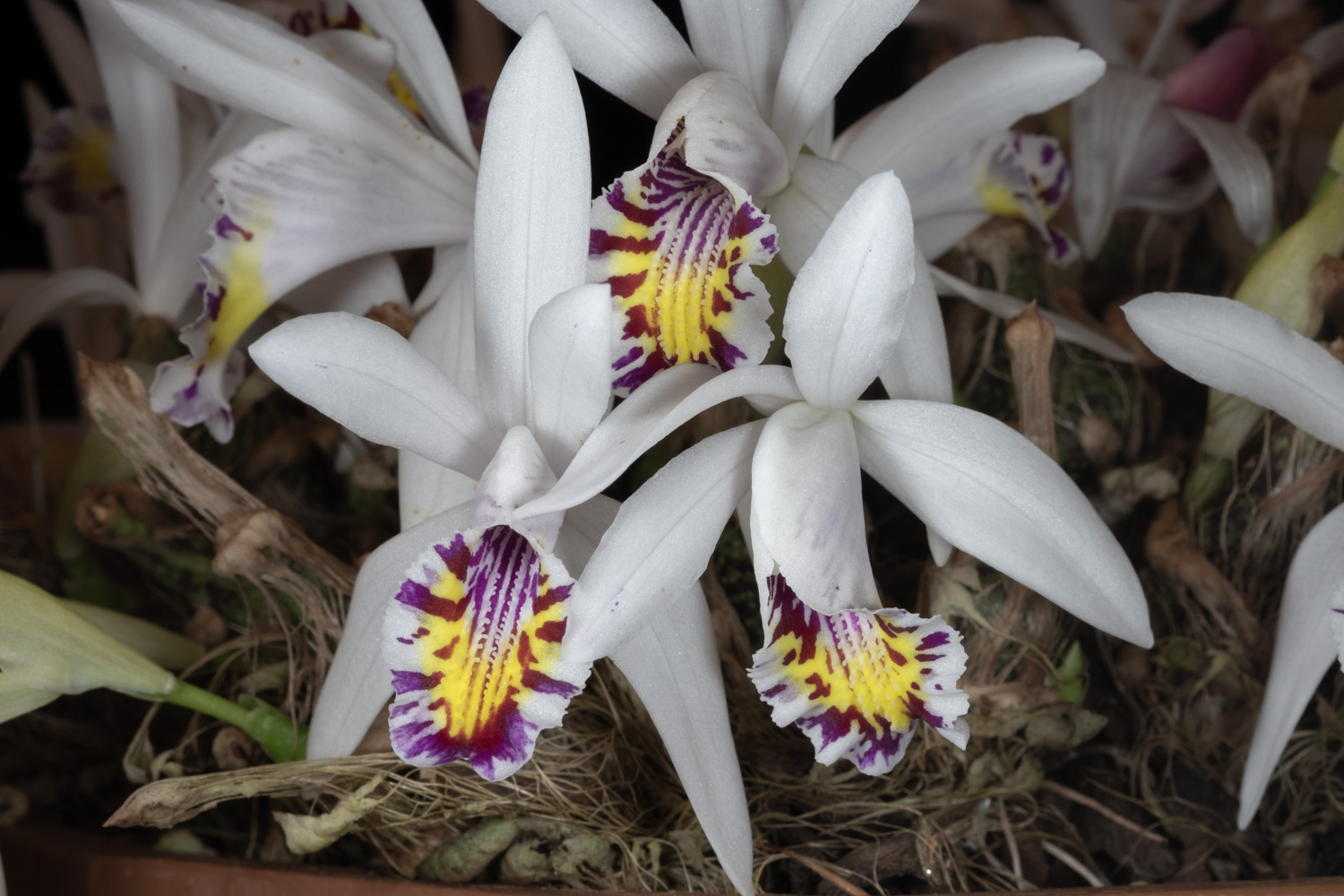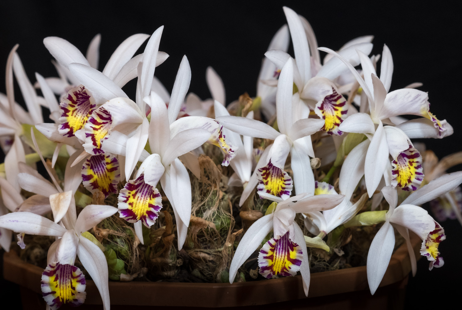 Infloreszenzen: Gruppe von 17 Pseudobulben mit 38 Blüten